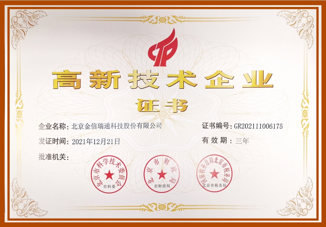 喜報:金信瑞通榮獲中關村高新技術企業稱號并獲得多項5G軟...